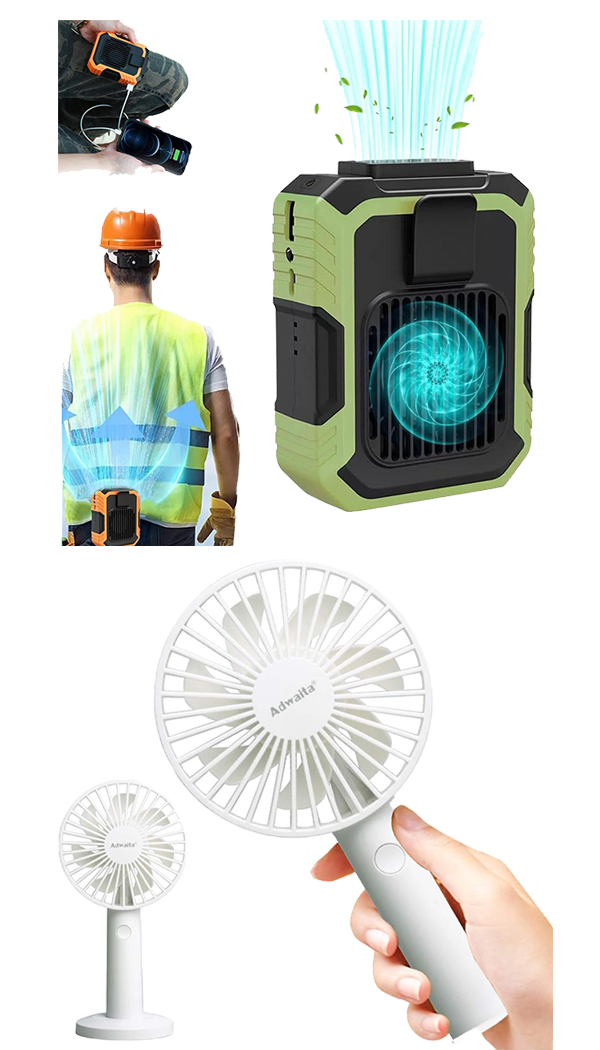 Waist Fan: Wear it on your waist or around your neck — move freely and stay cool without lifting a finger,